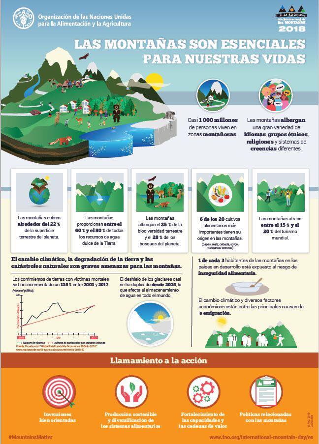 - Las montañas albergan el 25 por ciento de la biodiversidad terrestre y el 28 por ciento de los bosques del planeta.