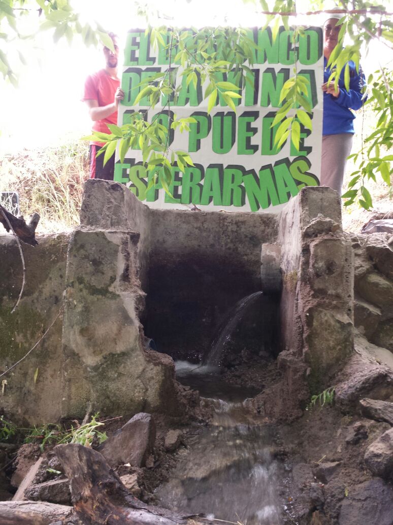 Conscientes de todo ello y con la vista y el sentido en un problema acuciante para un espacio natural y además protegido, o eso dicen los papeles, donde nada se corrige, todo lo contrario, se agrava, un grupo de personas acordamos subir, llenándonos de energía una vez más, y llegar al punto caliente, a donde nace el acoso y el maltrato a la vida en plena ebullición, el desvio de las aguas para discurrir sorda y sin su música saltarina y vivificante cuando nace y discurre libre, ahora la mano del egoísmo la entuba sin respetar la parte que le corresponde al barranco, a la vida; haciendo sabio aquel refrán de “El agua es de la tierra y más de donde nace”.