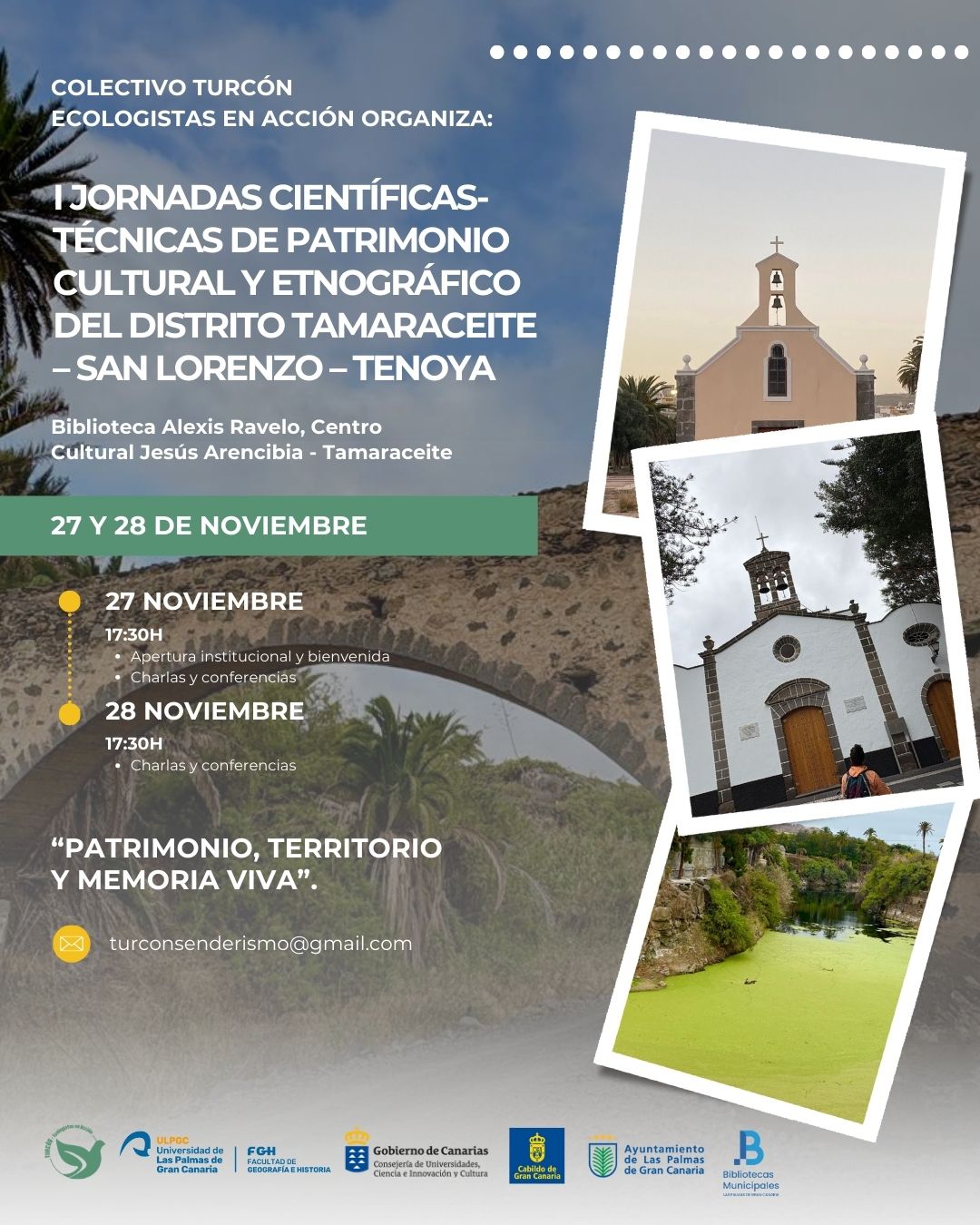 Turcón en colaboración con la facultad de Geografía e Historia de la Universidad de Las Palmas de Gran Canaria (ULPGC), y la Consejería de Presidencia del Cabildo de Gran Canaria, preparan estas Jornadas en el Distrito de Tamaraceite-San Lorenzo-Tenoya, que se celebrarán los días 27 y 28 de noviembre de 2025 en la Biblioteca Alexis Ravelo, Centro Cultural Jesús Arencibia – Tamaraceite.