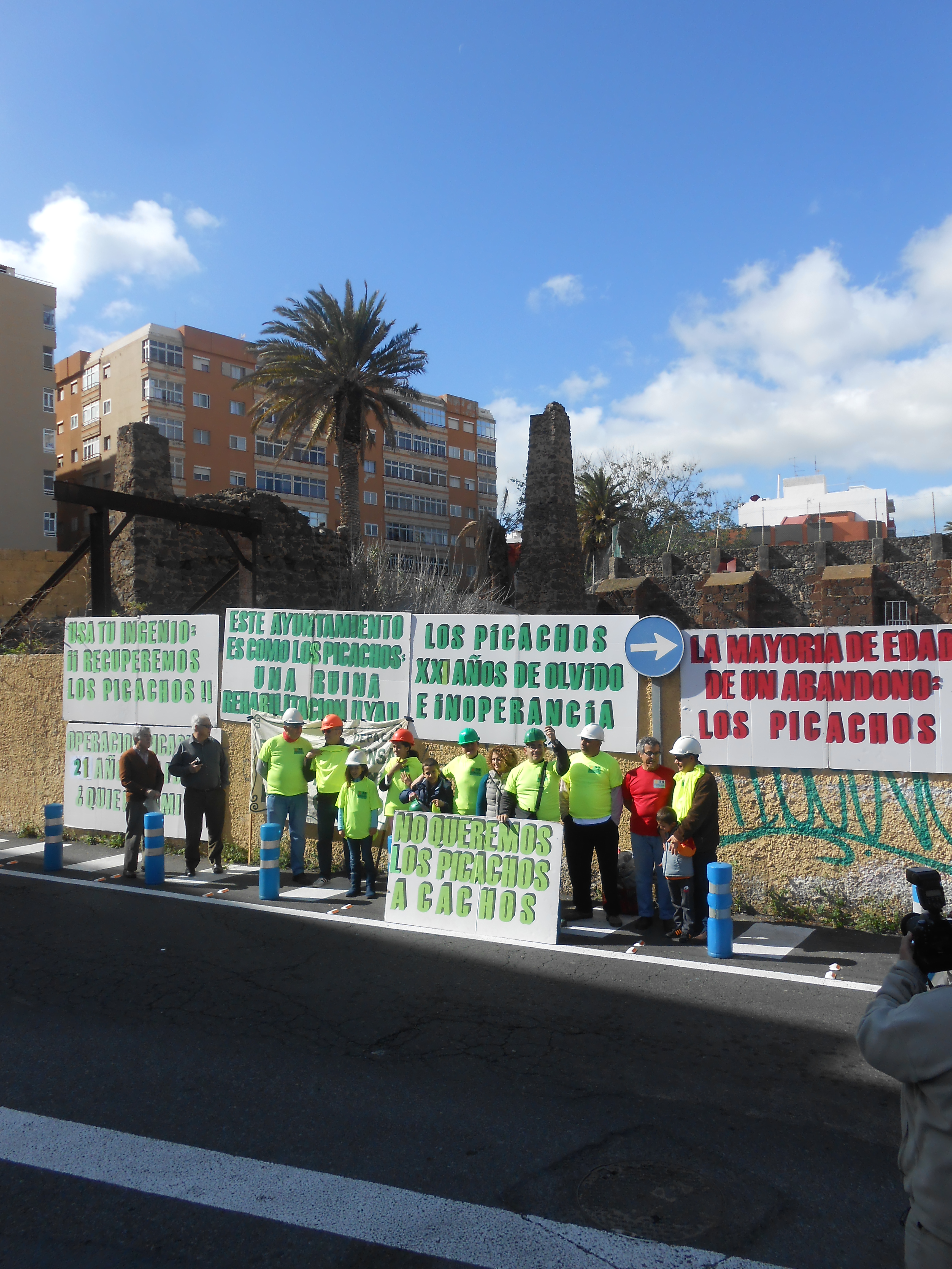 El 14 de febrero de 1994 se produjo el derrumbe de parte de la construcción conocida como Los Picachos. Éstos eran un referente en la historia y el paisaje de la ciudad de Telde. Desde el primer momento, y van 25 años, Turcón Ecologistas en Acción no ha cesado de reivindicar la recuperación de este emblemático sitio histórico, ante la pasividad y la inoperancia de los entes públicos. Así, a lo largo de los años transcurridos, en el aniversario del derrumbe se han convocado concentraciones y actos reivindicativos para demandar de las administraciones competentes la recuperación de este espacio. Lamentablemente, la respuesta salta a la vista, la herida sigue abierta en la memoria y en el paisaje.