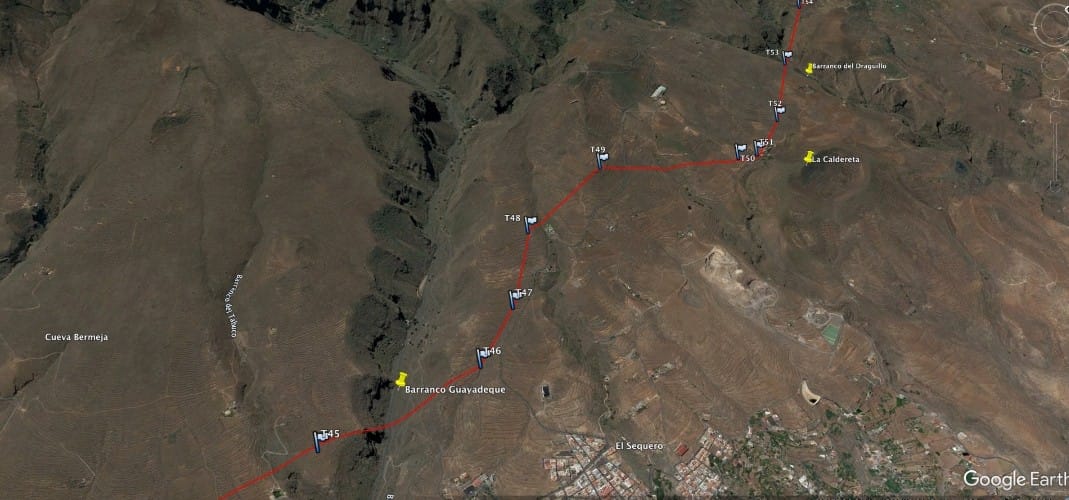 El proyecto promovido por Red Eléctrica de España (REE afectará a múltiples zonas de alto valor natural, algunas de ellas integradas en la Red Canaria de Espacios Naturales Protegidos (RCENP), sus 83 torretas y las intervenciones propias para su instalación en espacios singulares en los cuales no está permitido este tipo de instalaciones, tales como: el Monumento Natural del Barranco del Draguillo, el Monumento Natural del Barranco de Guayadeque, el paisaje protegido de Lomo Magullo y el Monumento Natural de Roque Aguayro. Además, las torres de alta tensión afectarán al Campo de Volcanes de Rosiana (Telde), en trámites de ser incluido en la RCENP, así como al conjunto volcánico de Jinámar, ya de por sí altamente degradado. No parece que tal cumulo de afecciones nos pueda dejar impávidos ante tal despropósito.