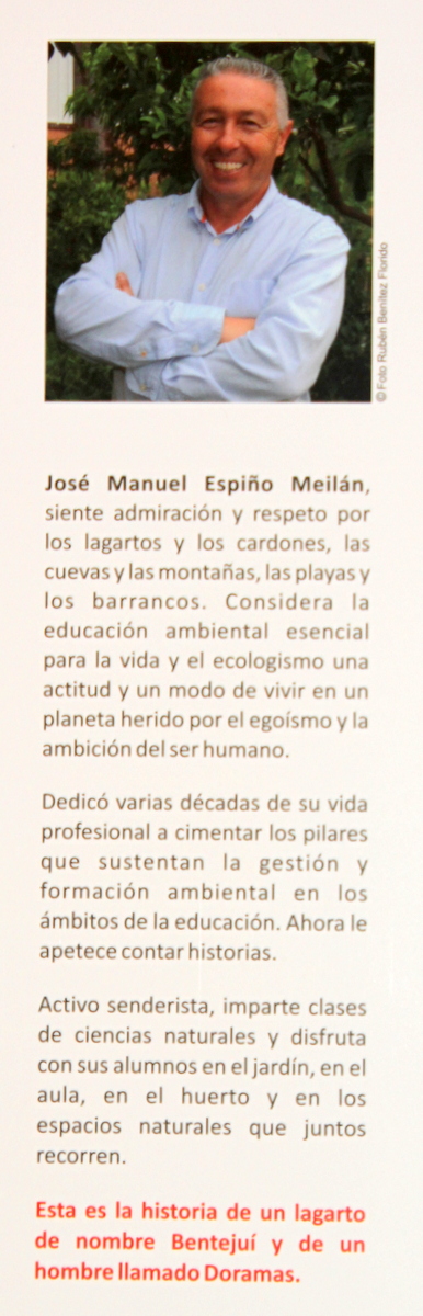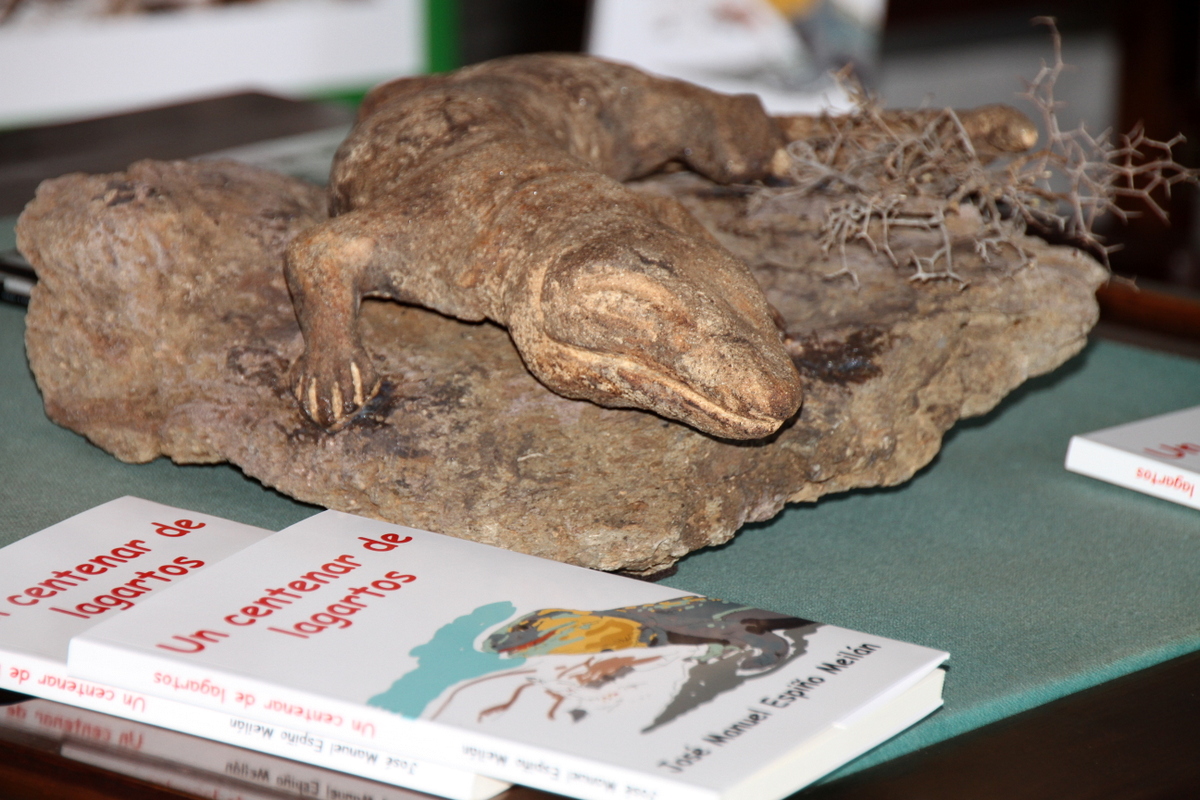 Ante una escultura del lagarto gigante elaborada por Isabel Placeres, una fotografía del reptil Gallota, muy bien lograda, de Ildefonso Rodríguez Ramírez, el escritor y autor de esta novela Un centenar de lagartos, el autor, Espiño Meilán, destaca los principales motivos, mensajes y estructuras de concienciación del cuidado, preservación y motivos para atender, por la narrativa y el diálogo de Doramas con su medio ambiente, y su principal relación con el Lagarto de Gran Canaria. Una obra literaria, novelada, didáctica, amena, y divulgativa del medio ambiente que cada día, muchas veces sin tener en cuenta, miramos, pero no observamos las curiosidades, elementos naturales, flora y fauna, de la maravilla de naturaleza que nos rodea. Muchas gracias.