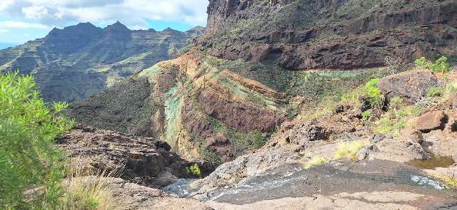 Y es que, la Formación Geológica de Los Azulejos, es de esos lugares, patrimonio natural, más visitados del municipio de Mogán ya que son materiales piroclásticos del borde de la Caldera de Tejeda (de unos 14,1 millones de años). Los gases calientes hidrotermales han alterado estas coladas, formando nuevos minerales en la roca original, que incluyen carbonatos, silicatos, óxidos, sulfatos, etc., dando esa coloración especial y peculiar aspecto a las rocas de Veneguera.